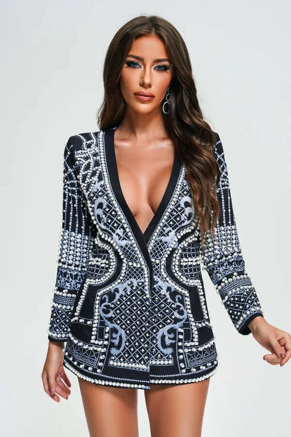 Tellement glamour, ce blazer. Avec le détail de ses perles, il a tout pour plaire. Portez-le avec le pantalon ajusté , une paire d’escarpins et quelques accessoires Vous avez le sens pour la mode, vous !