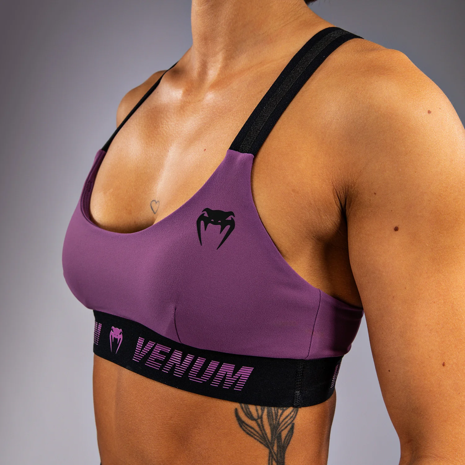 Le motif Venum contrasté en noir se répète sur la bande et les bretelles, avec un logo noir sur la poitrine.