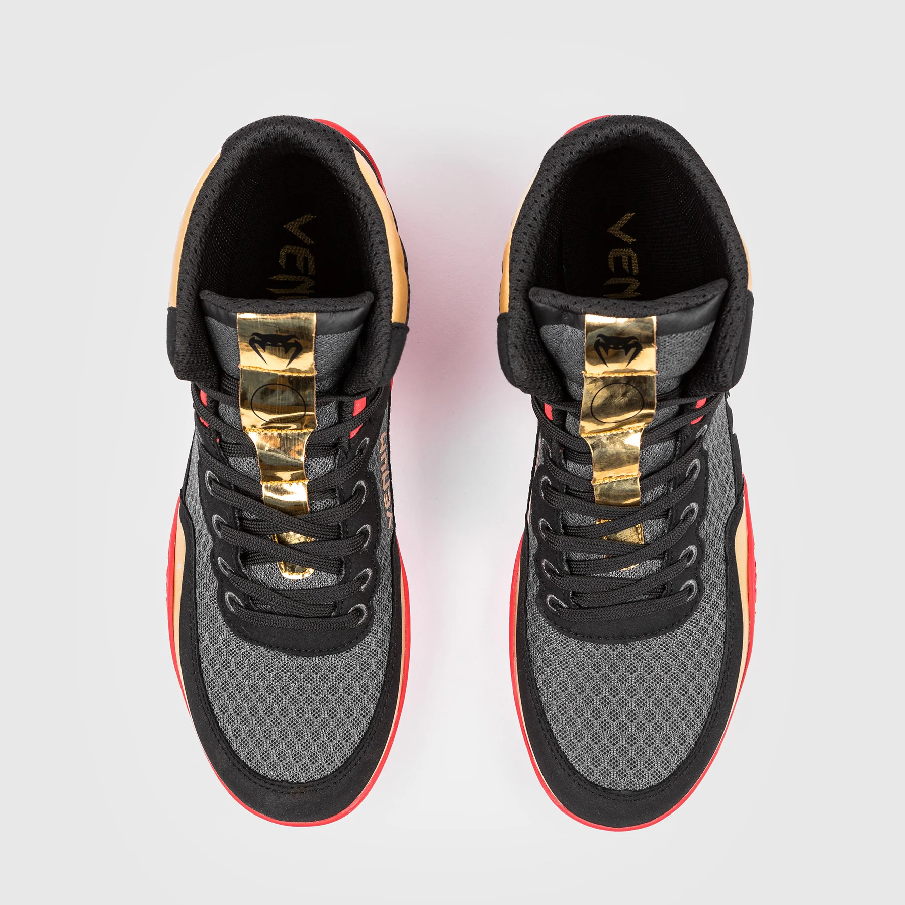Faites passer vos performances au niveau supérieur dans ce coloris noir, or et rouge, avec les logos Venum sur le côté et la languette.
