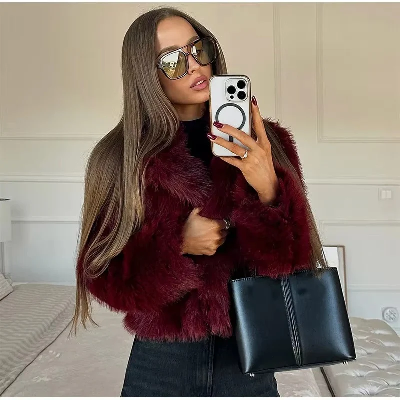 Manteau fausse fourrure bordeaux