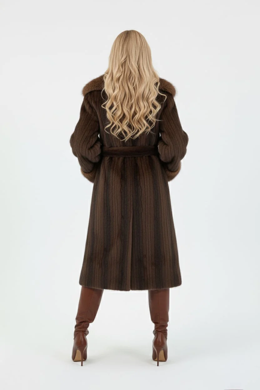 Description : Manteau en fausse fourrure Ceinture amovible Coupe longue Laissez-vous séduire par ce manteau chocolat, une pièce intemporelle qui allie chaleur et élégance.