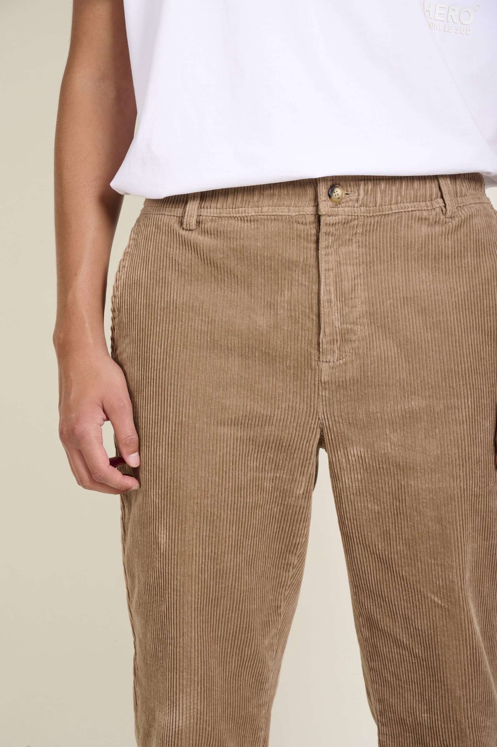 Le pantalon Alwyn revisite le classique en velours côtelé avec une approche moderne et confortable. Conçu en 100% coton, il allie douceur et robustesse. Sa coupe droite lui confère une allure intemporelle, tandis que sa taille élastiquée apporte un confort optimal au quotidien.