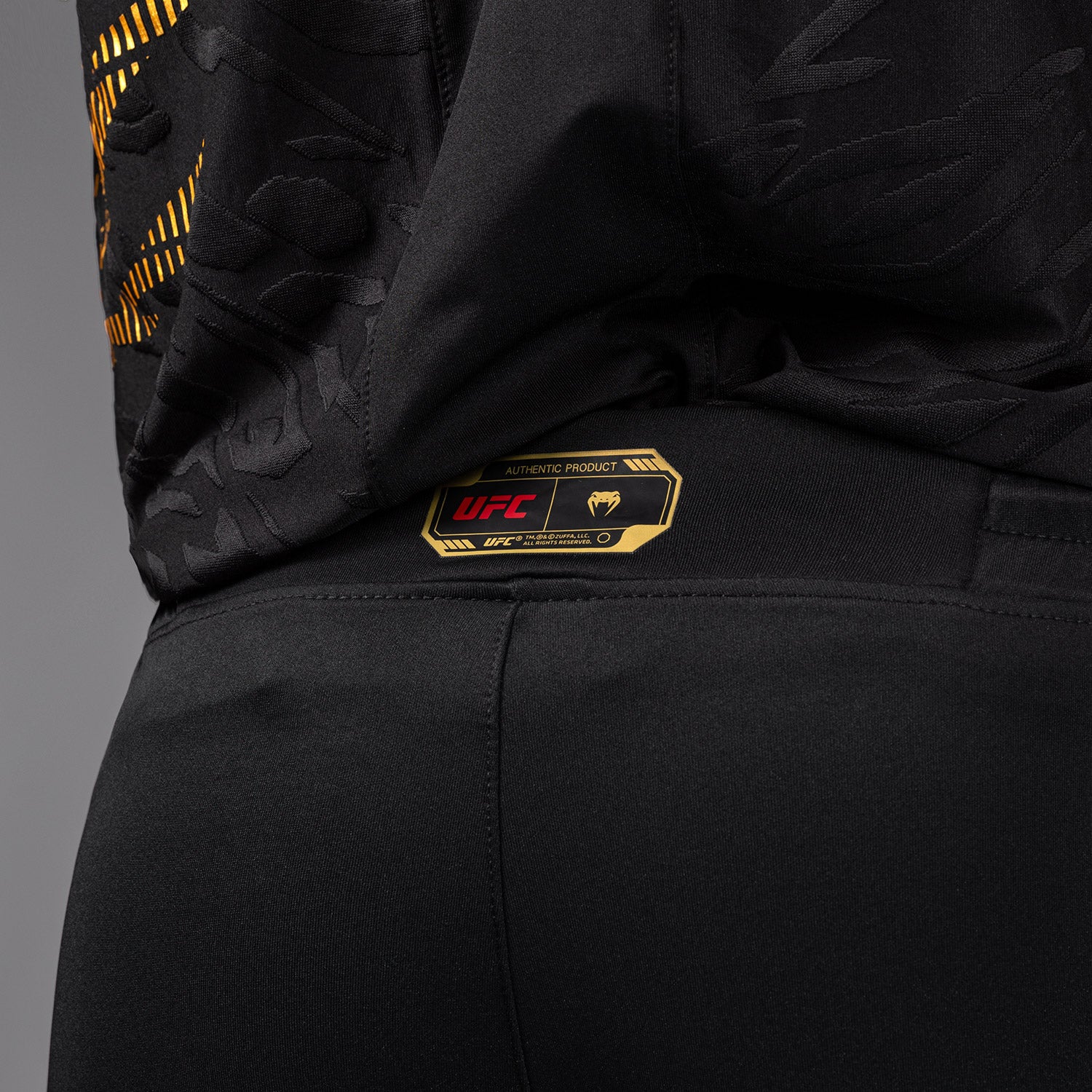 des détails réfléchis. L’imprimé animal en jacquard invite les athlètes à se connecter avec leurs instincts primaires les plus profonds pour triompher dans l’Octogone.
