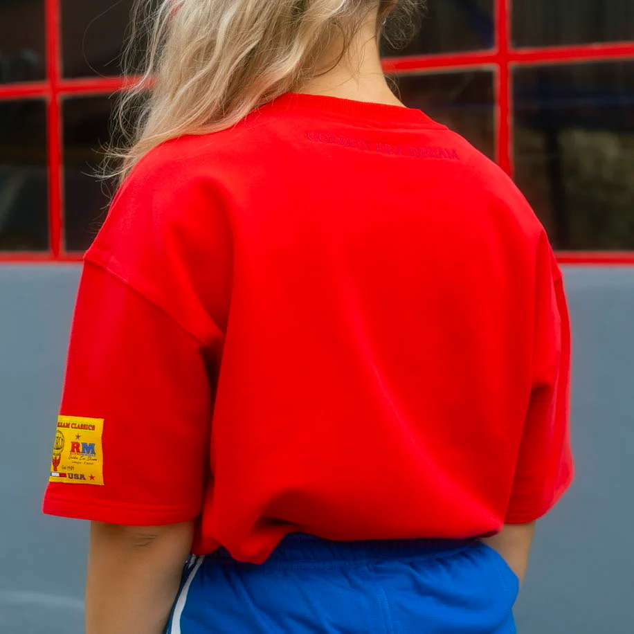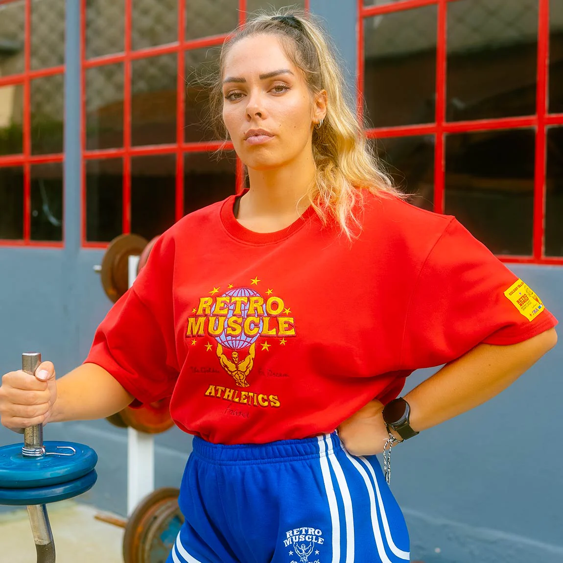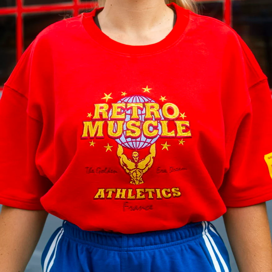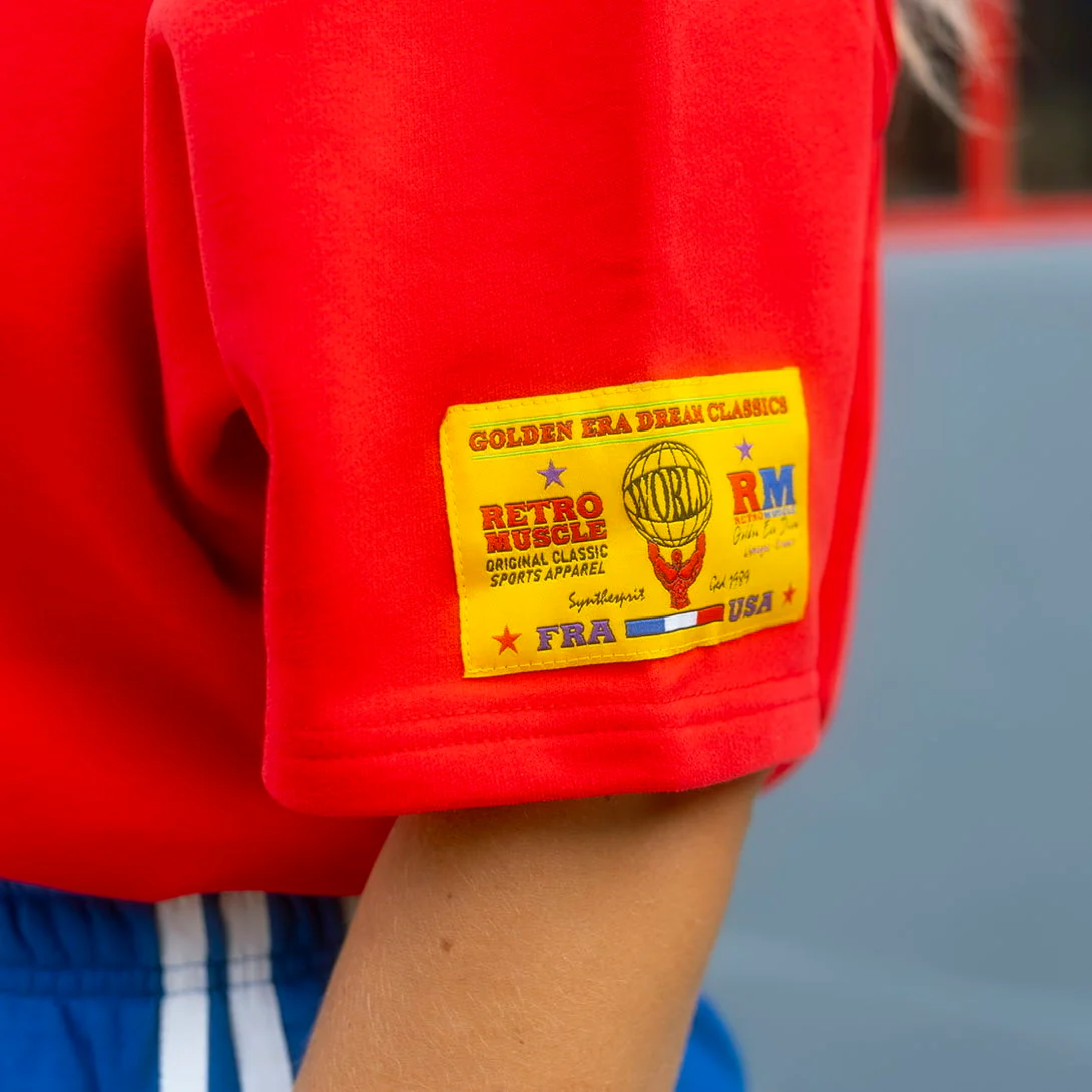 Le pump cover des années 80, version rouge audacieuse. 340g de coton épais oversize avec broderie Golden Era imposante. Pour celles qui veulent l’énergie des légendes et imposer leur style à la salle.