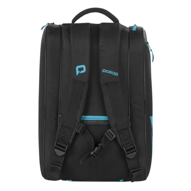 Découvrez le sac de padel Pallap Mid Racket Noir, majoritairement noir avec des touches de bleu.