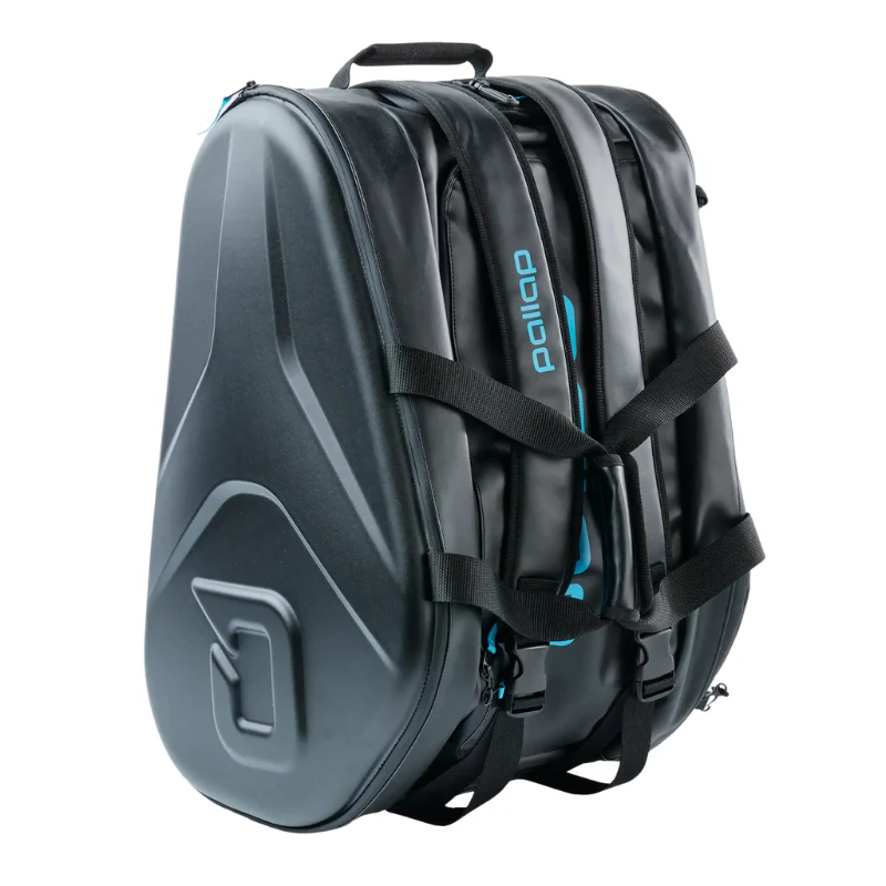 Sur les côtés, deux compartiments latéraux spécifiques permettent de transporter jusqu’à quatre raquettes, dont un est doté d’une isolation thermique et d’un panneau thermoformé, pour protéger vos cadres des chocs et des variations de température.