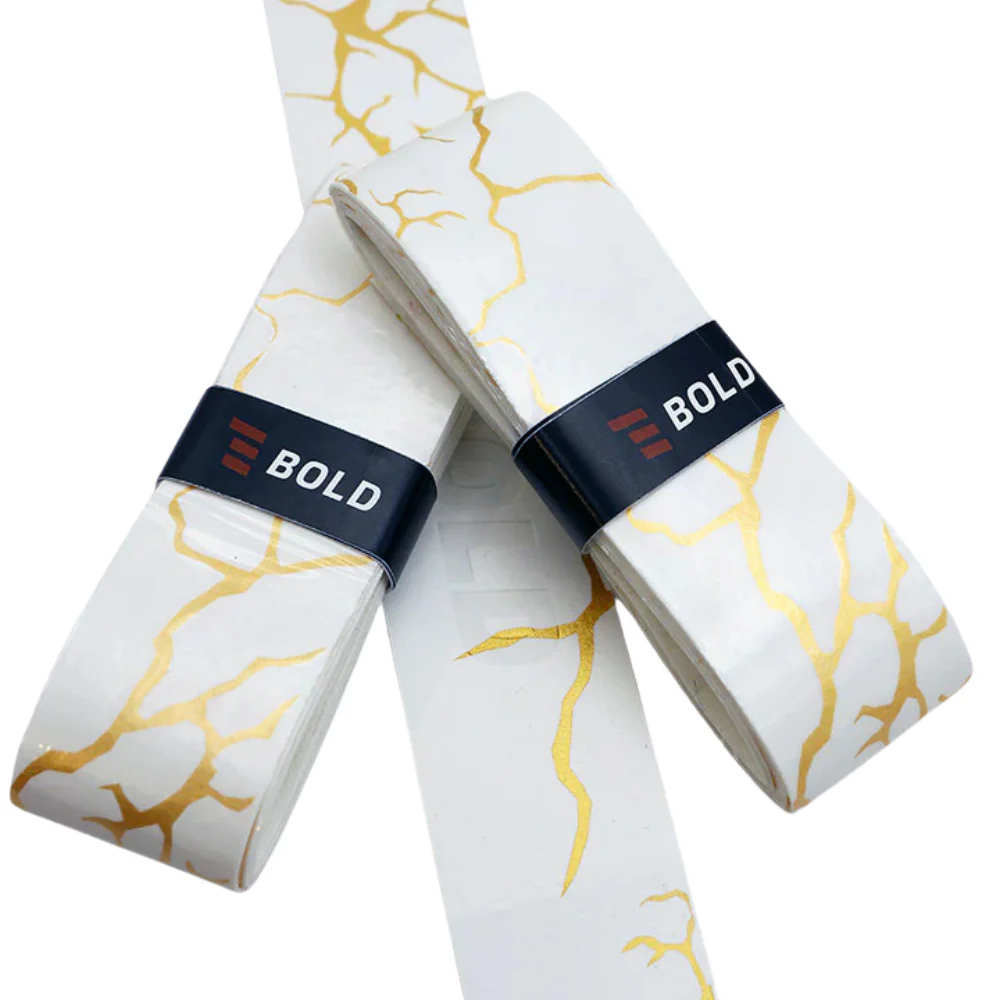 Entièrement blancs, ces surgrips se démarquent par leurs motifs effet éclairs dorés, apportant une touche lumineuse et premium à votre raquette tout en affirmant votre style sur le court.