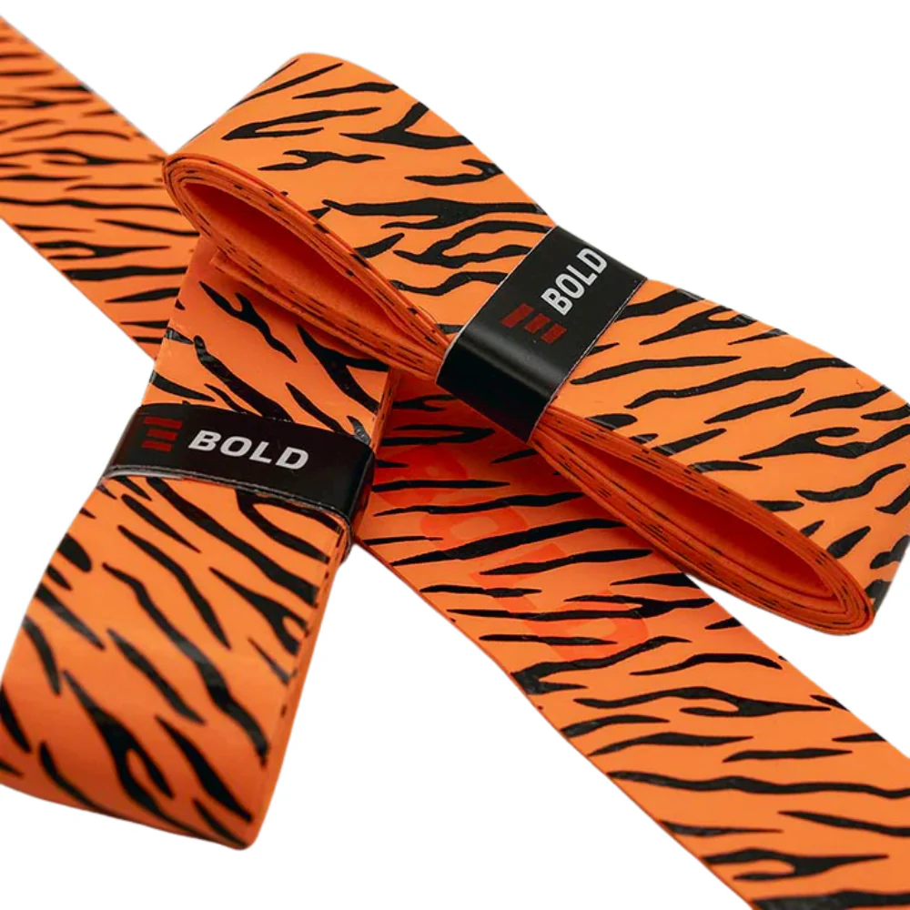 Découvrez les surgrips Tigre de la marque Bold, un lot de trois surgrips au design audacieux orange à motif tigre, pensé pour les joueurs qui veulent se démarquer sur le court.