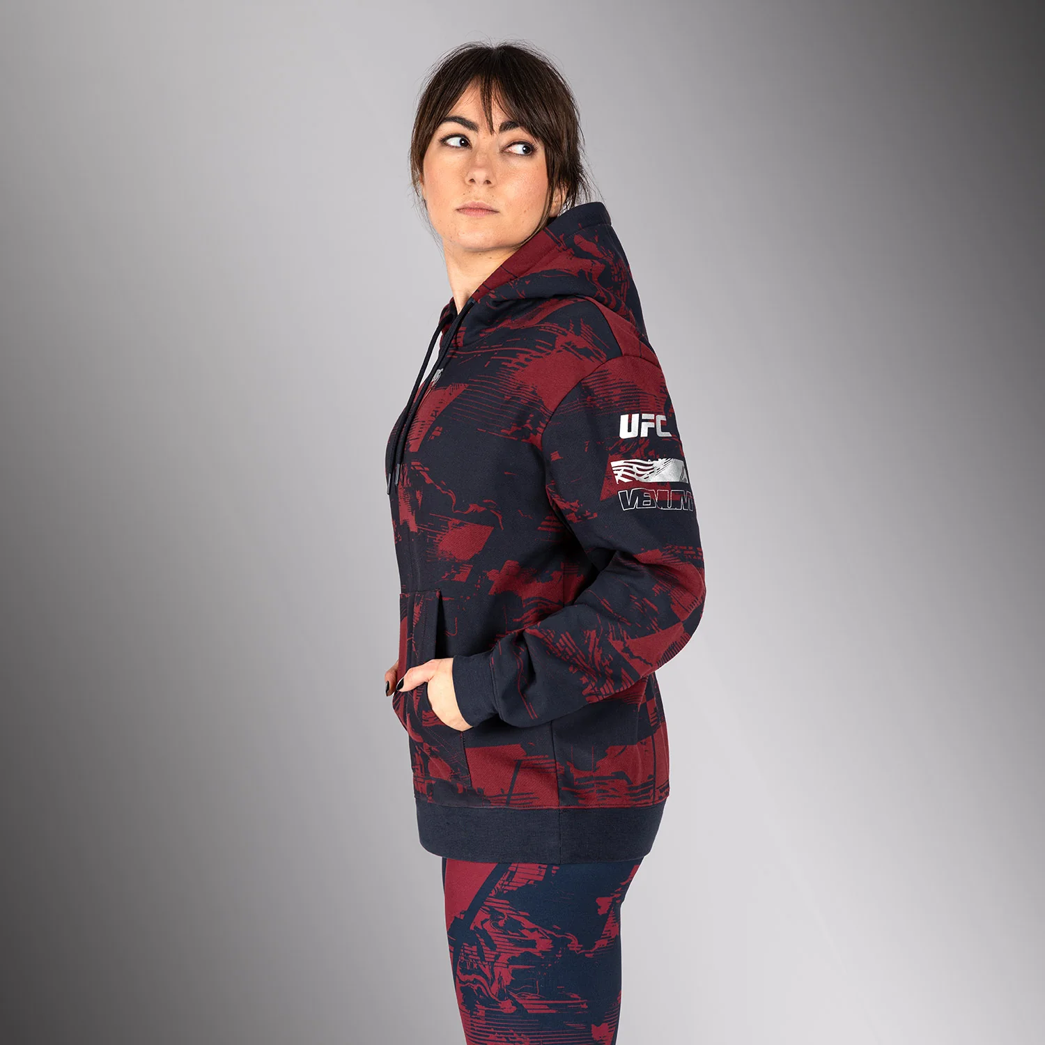 Sweat à capuche Femme UFC Zenith by Venum Authentic Fight Week – Bleu marine/Bordeaux/Argent