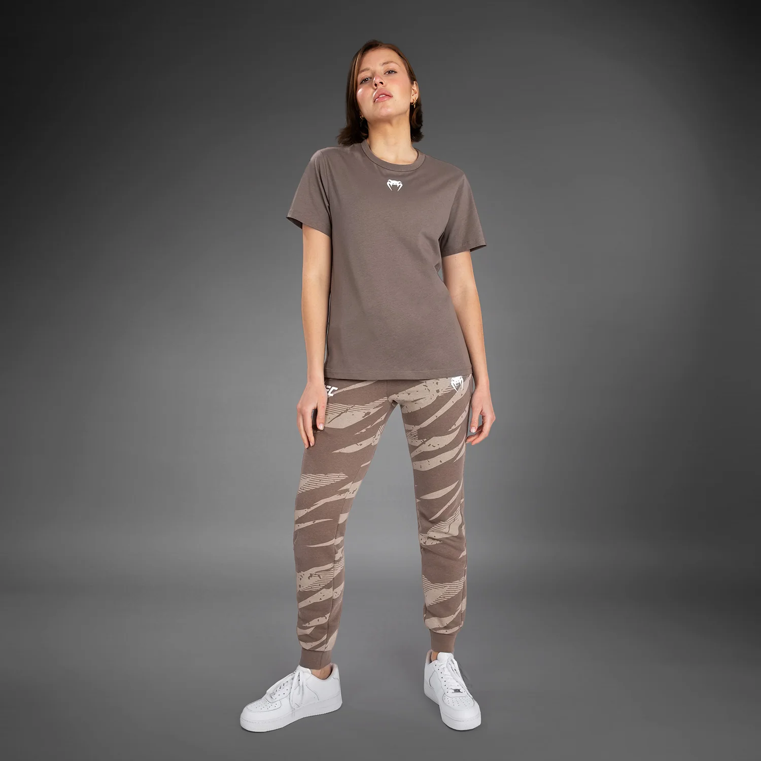Son imprimé camouflage audacieux, agrémenté des logos blancs de Venum et de l’UFC, s’inspire des athlètes qui entrent dans l’Octogone, prêts à frapper et à riposter.