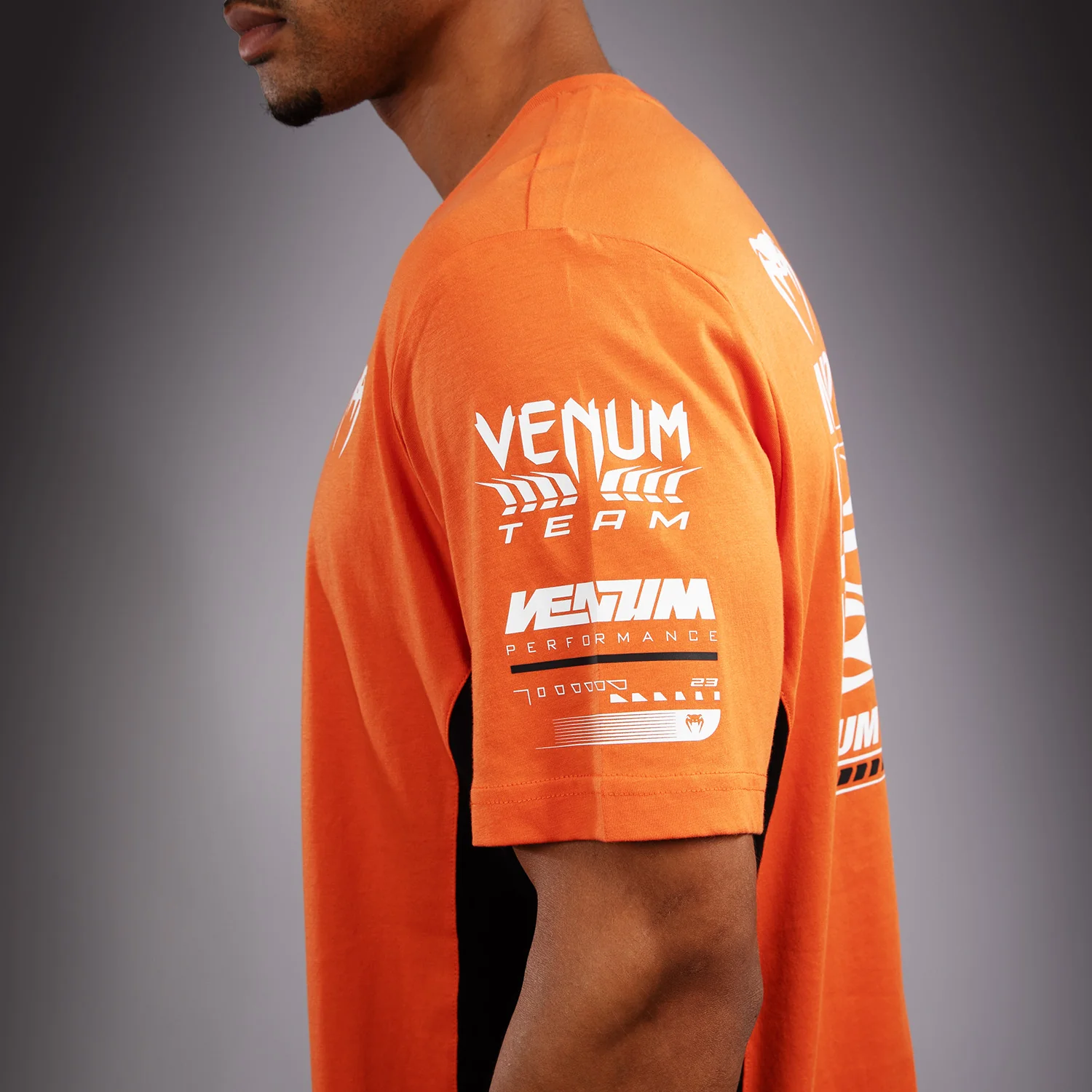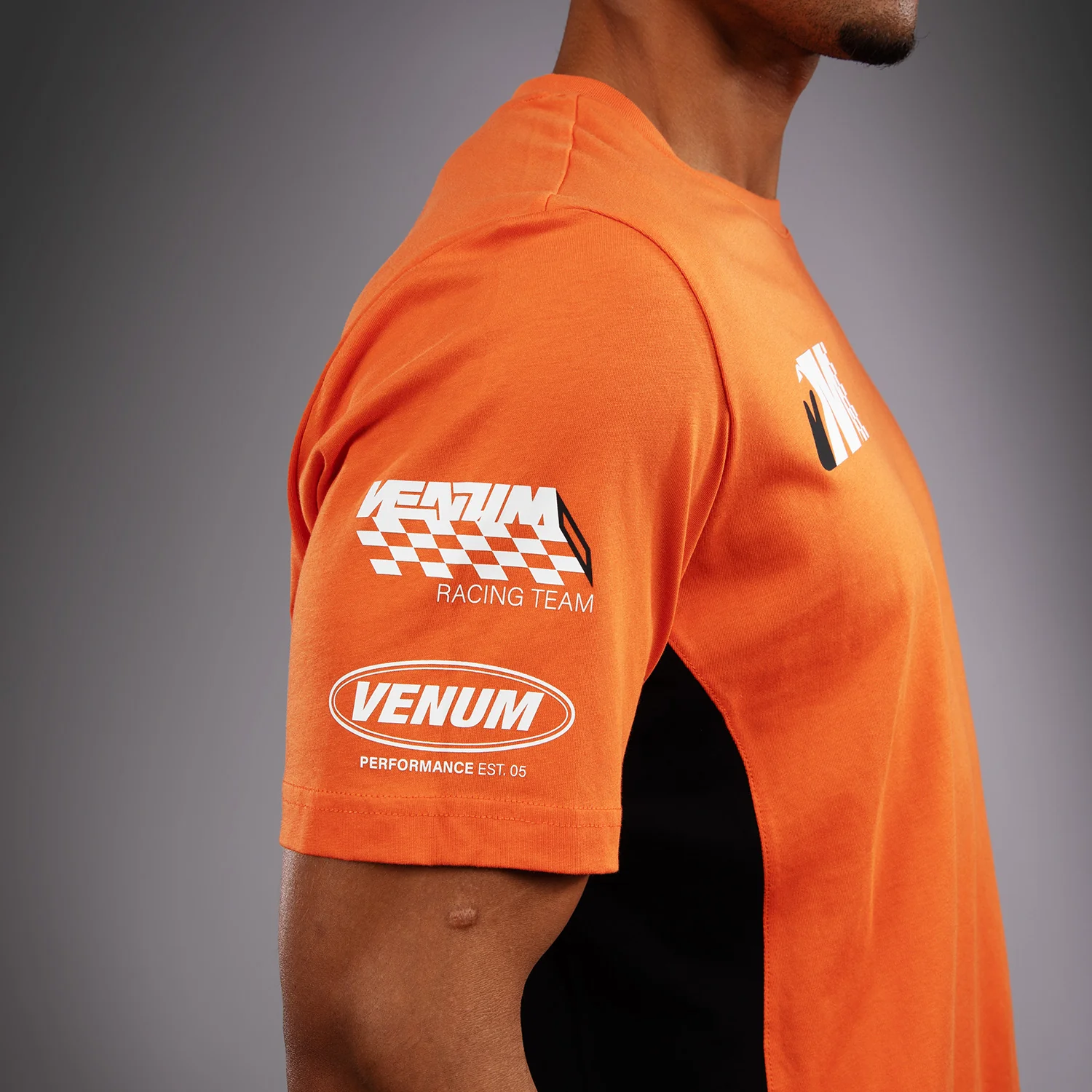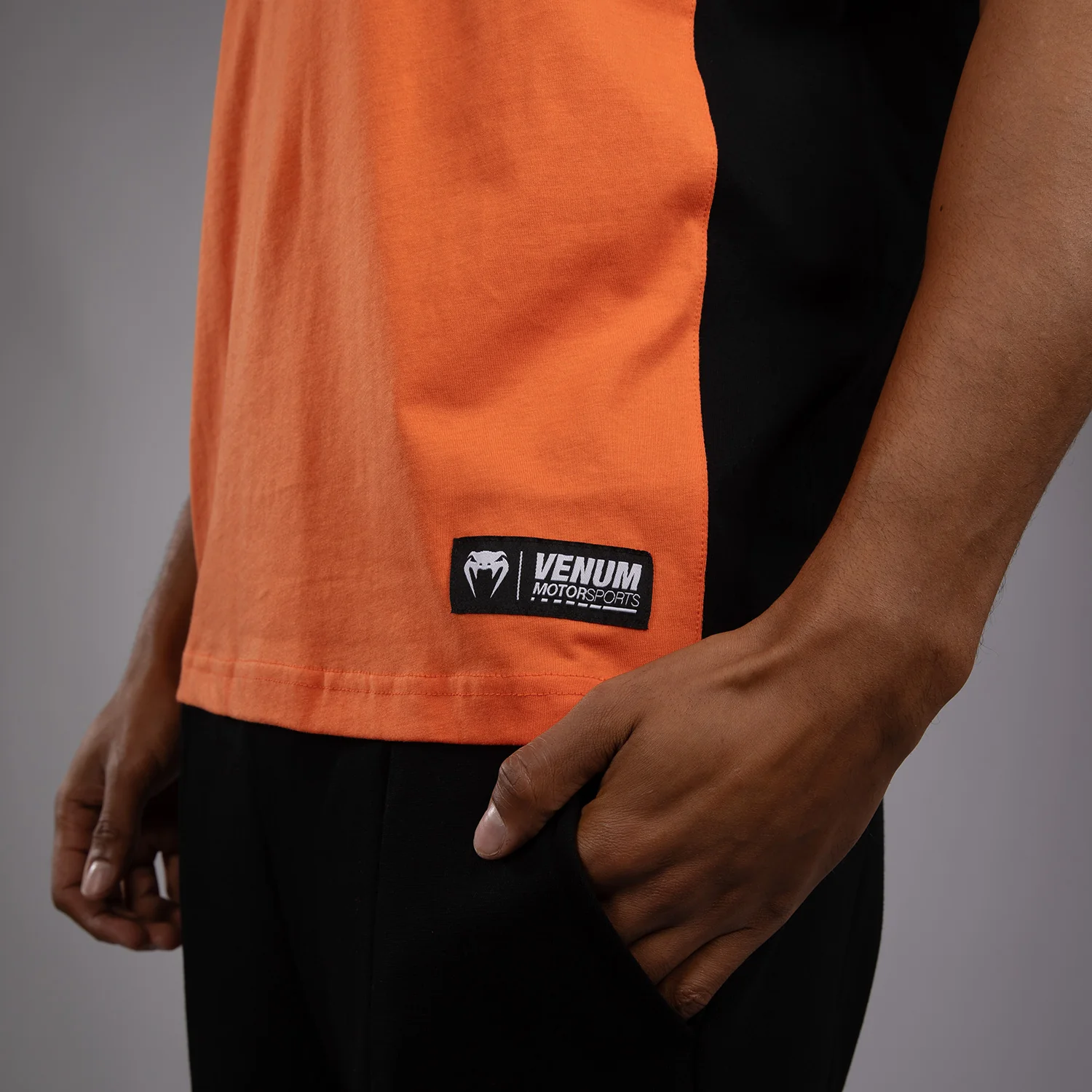 Le T-shirt Venum Motorsport en Tangerine est un tee-shirt à col rond de coupe régulière avec des panneaux noirs contrastants sur les côtés. Arborant des patchs imprimés et brodés en noir et blanc inspirés par les sports mécaniques Venum, ce t-shirt est prêt pour la piste !