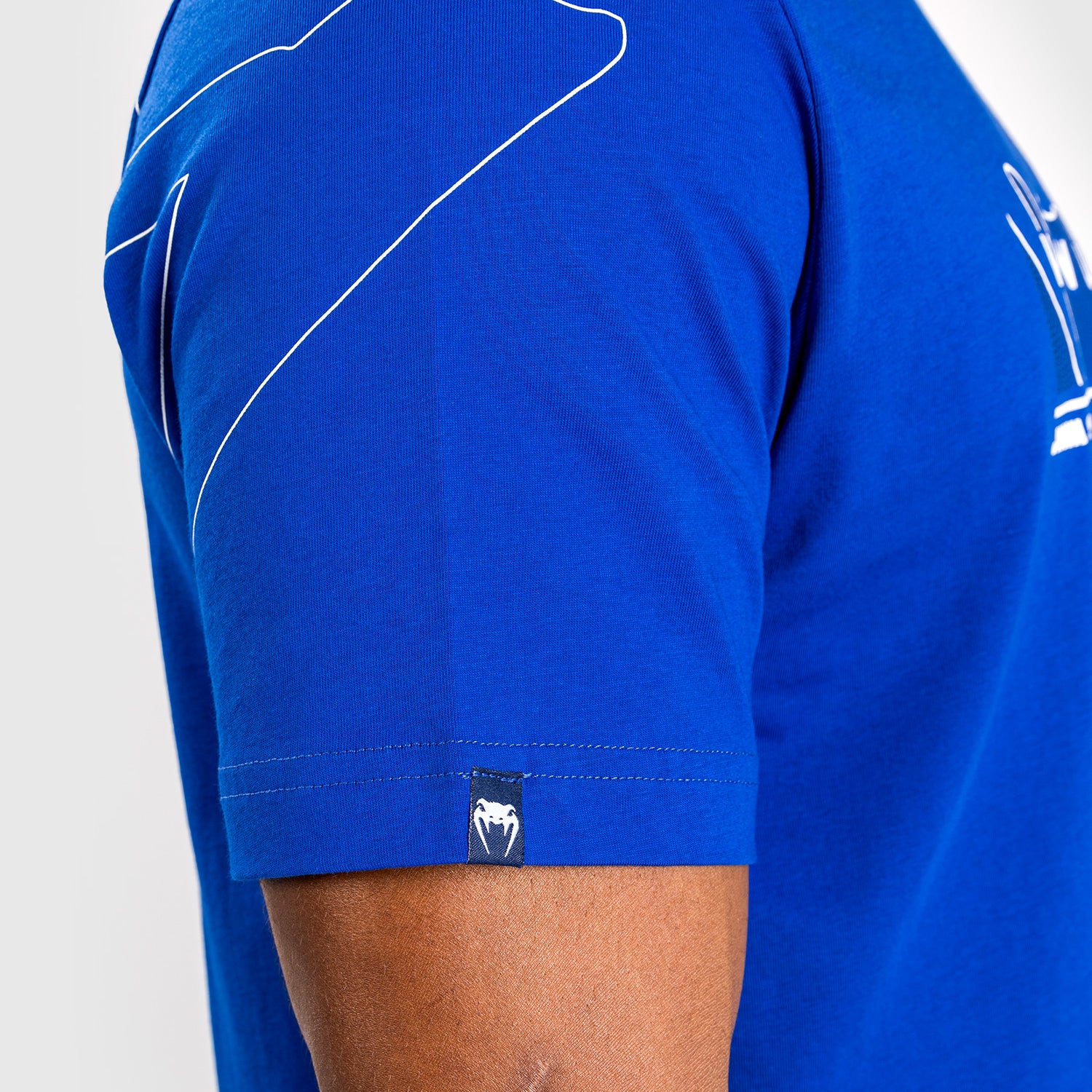 Les graphismes gris et blancs sur la poitrine et sur l’ensemble du dos de ce tee-shirt Bleu royal sont audacieux. L’étiquette de la marque sur la manche droite ajoute une finition haut de gamme.