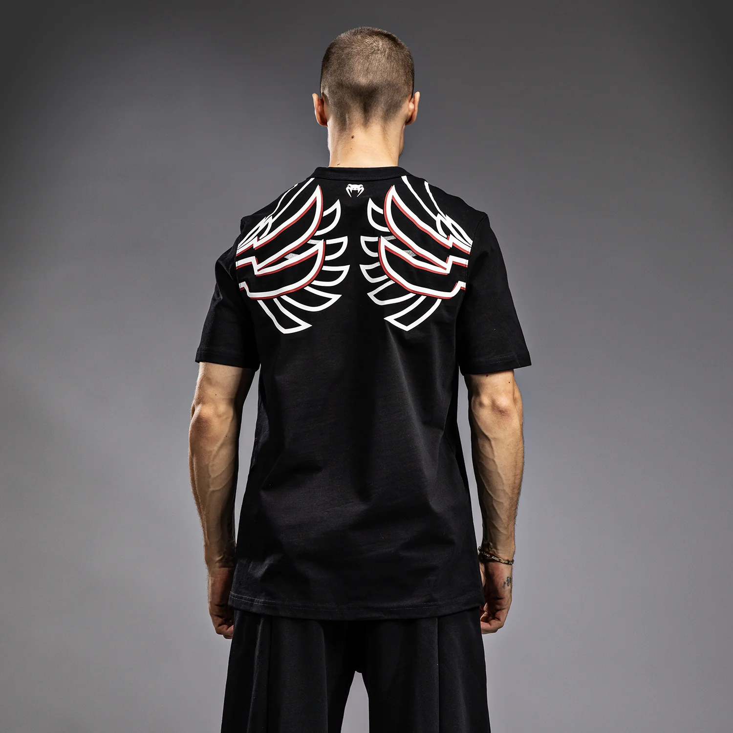 Le T-shirt Venum x TEKKEN 8 Jin Kazama rend hommage au valeureux guerrier de Karaté Jin Kazama. Ce T-shirt noir à coupe classique arbore les ailes d’ange emblématiques de Jin dans le dos, avec le logo Venum centré à l’arrière du col. Le texte à l’avant du T-shirt indique : “Quand l’audace est en vous / Quand la pression monte / Révélez qui vous êtes / Adrénaline à l’intérieur.”