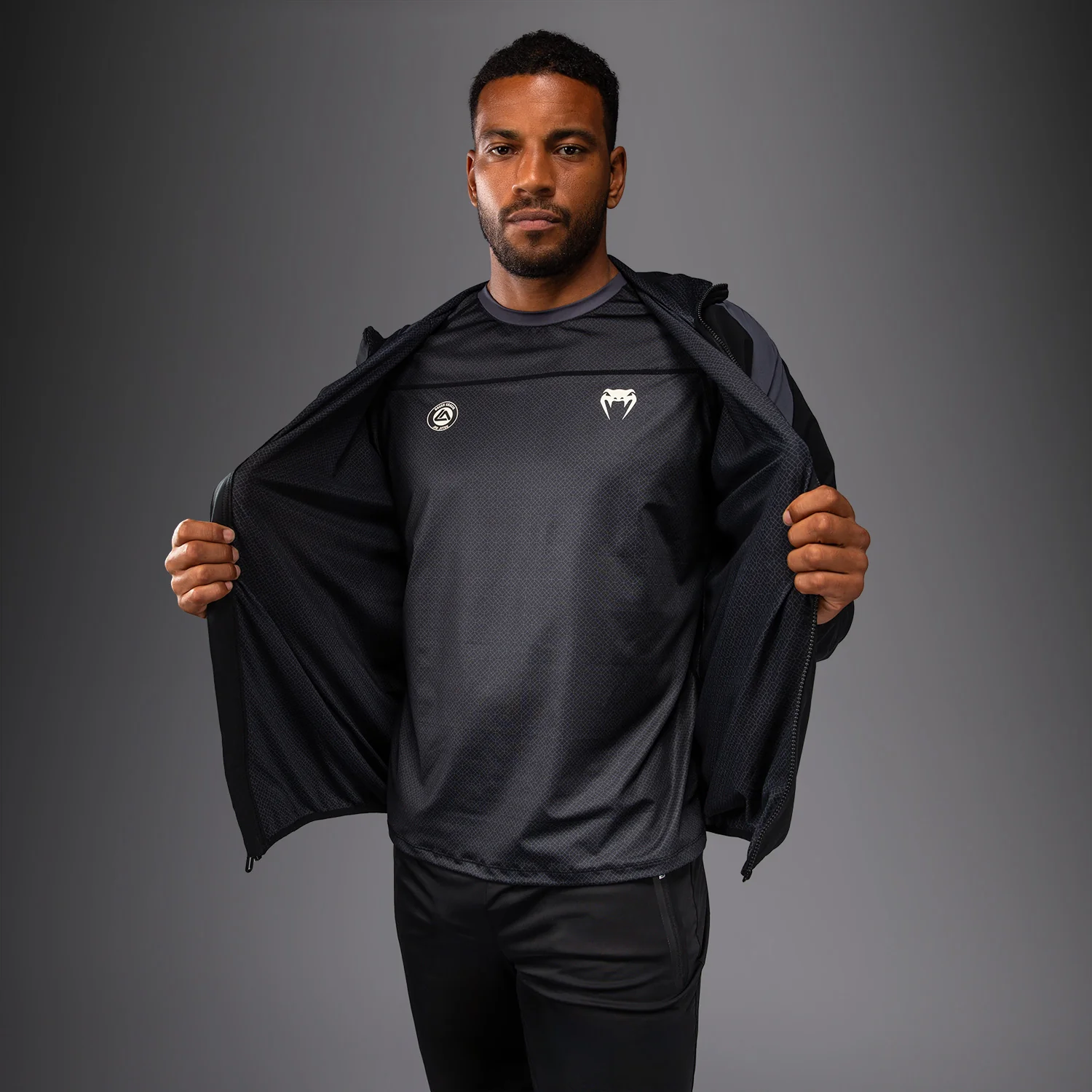La Veste Zippée Venum x Roger Gracie Academy est une veste à fermeture intégrale conçue avec des tissus techniques. Idéale comme couche supplémentaire à la salle ou en tenue sportive par temps frais, elle allie performance et confort. Sa capuche ajustable, ses poches ouvertes et son col montant apportent des détails pratiques.