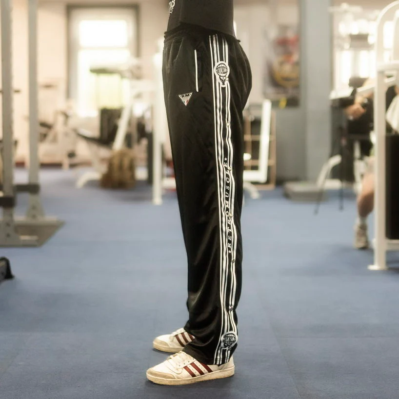 Le style des vestiaires légendaires. L’élégance d’une époque où chaque rep séparait les titans des amateurs. Ce pantalon n’est pas un simple vêtement, c’est un retour aux sources. Conçu pour ceux qui refusent le moderne sans âme et choisissent l’héritage plutôt que l’oubli.
